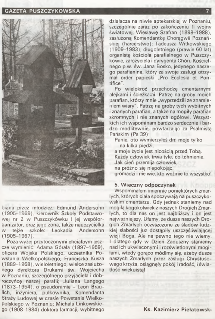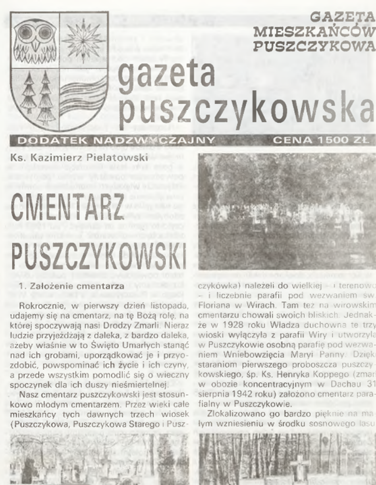 § 4 Dekretu stanowi: „o cmentarz grzebalny postara się nowa parafia; na przeciąg pięciu lat atoli ma prawo korzystać z cmentarza kościoła macierzystego ( t.j. cmentarza parafii św. Floriana w Wirach – przyp. autora) pod temi warunkami, pod jakimi korzystają z niego parafianie własni.”