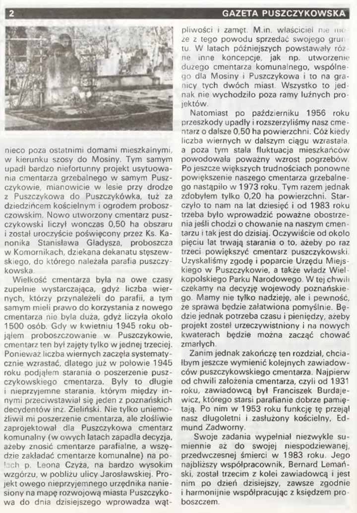 Upadł więc projekt lokalizacji cmentarza w lesie przy kościele (wg ks. K. Pielatowskiego). Umowa przewidywała możliwość wykupu dzierżawionego gruntu, a czynsz ustalono na 6 zł rocznie. Stronami umowy były: Nadleśnictwo Mosina i parafia w Puszczykowie. Zgodę na utworzenie cmentarza Starostwo Powiatowe w Śremie wydało 16 kwietnia 1931 roku.